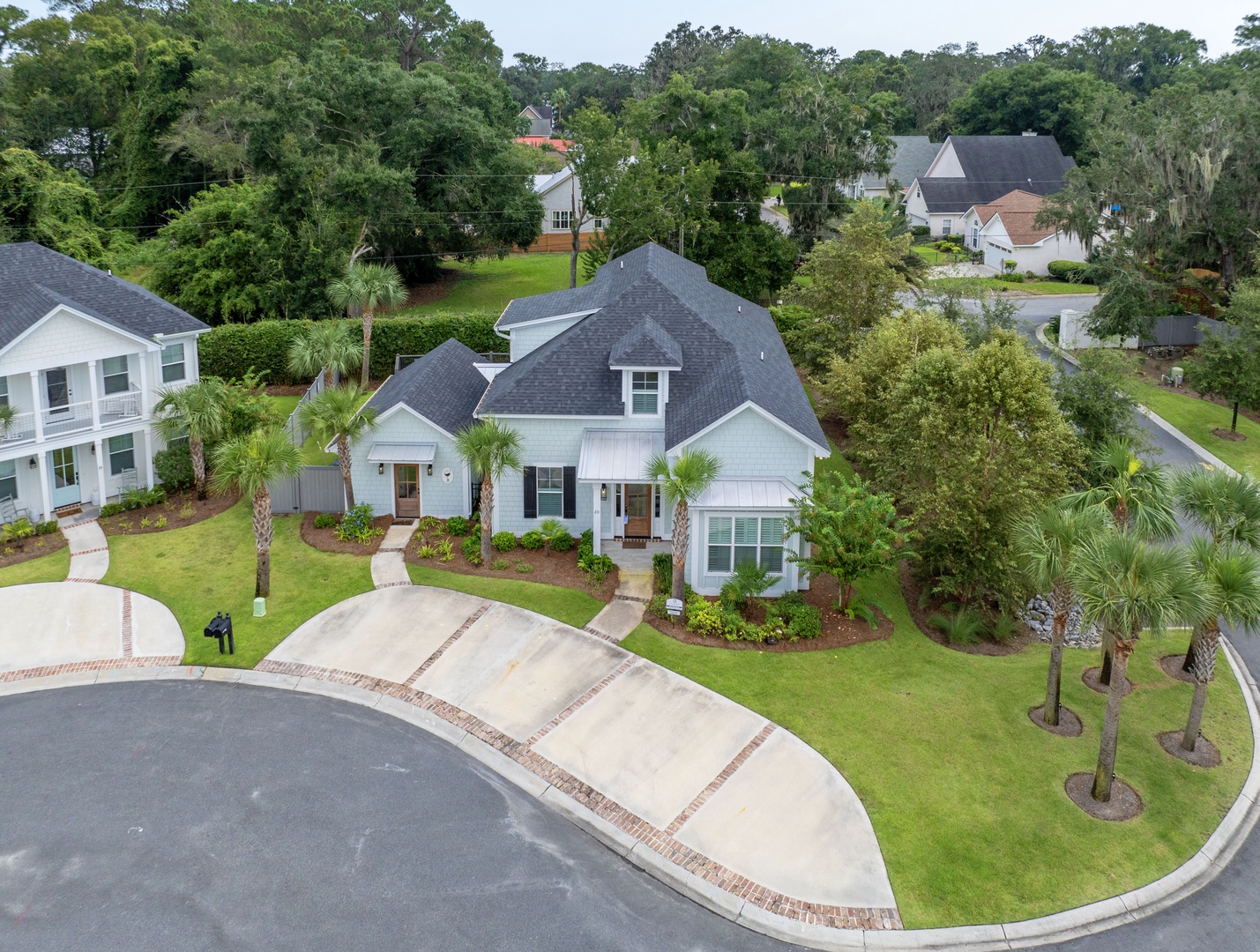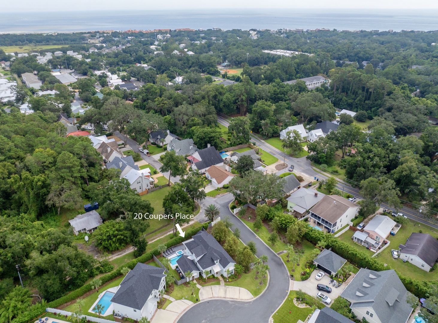 Step into luxury and comfort at this stunning 5-bedroom, 5-bathroom retreat. Built in 2021, Hook, Wine & Sinker is nestled in a serene private cul-de-sac neighborhood, this exquisite home offers everything you need for an unforgettable St. Simons Island vacation.
