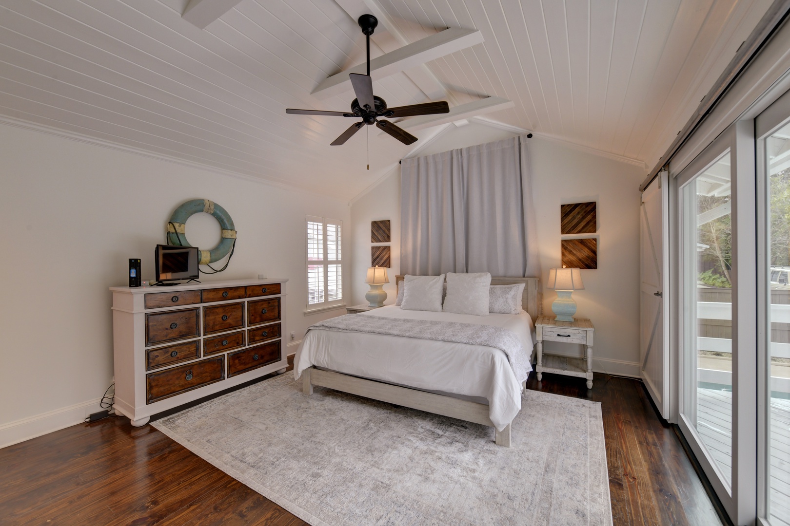 Bedroom 1 – Primary, King (sleeps 2) overlooks pool