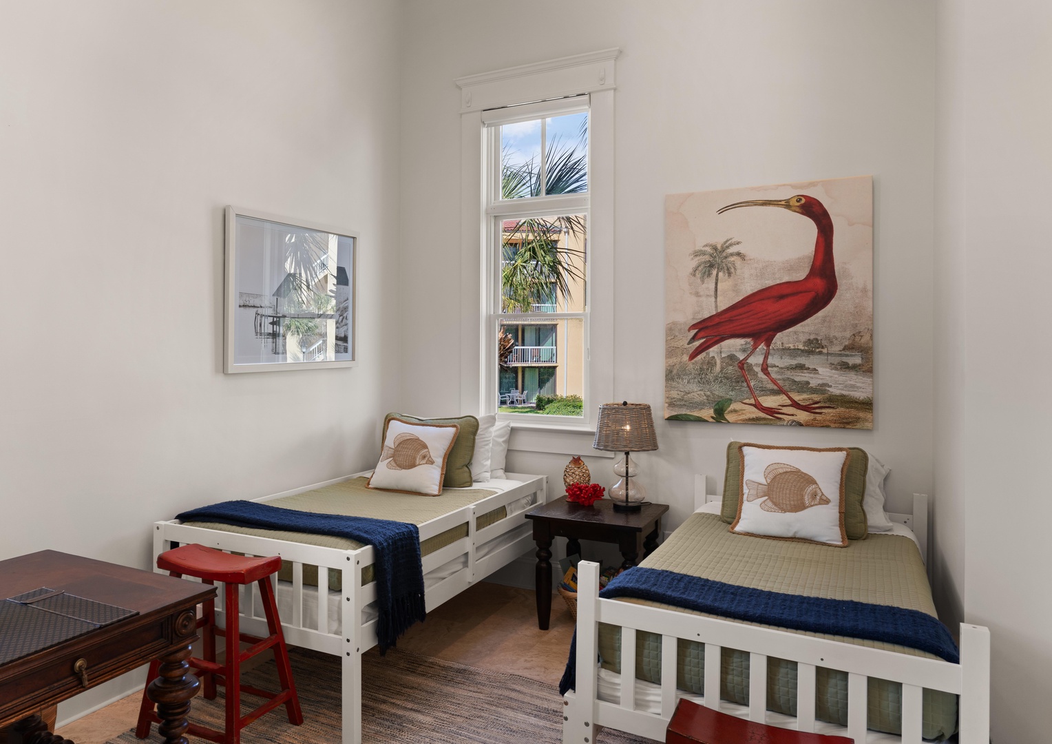 • Last but not least, the Twin room with 2 single beds (sleeps 2), and a flat screen TV. There is also a desk for the working remotely.