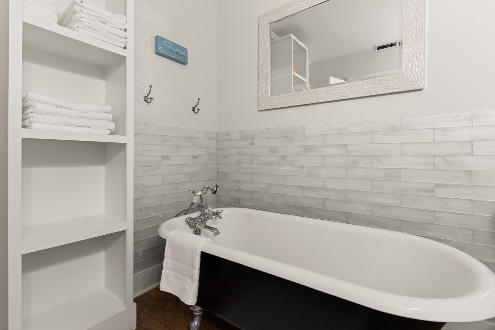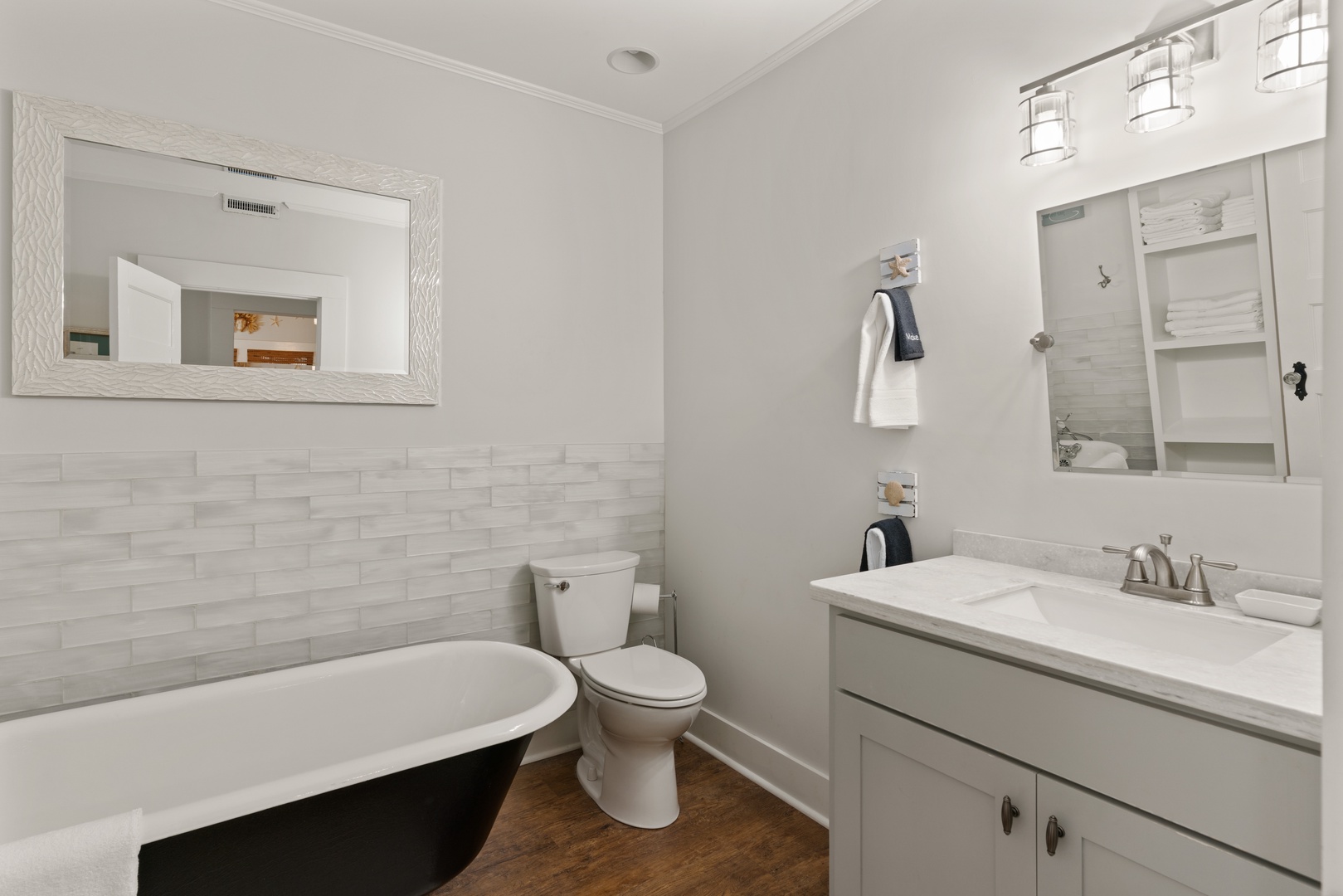 Bathroom 1 – Hall, shared, Clawfoot tub with handheld shower