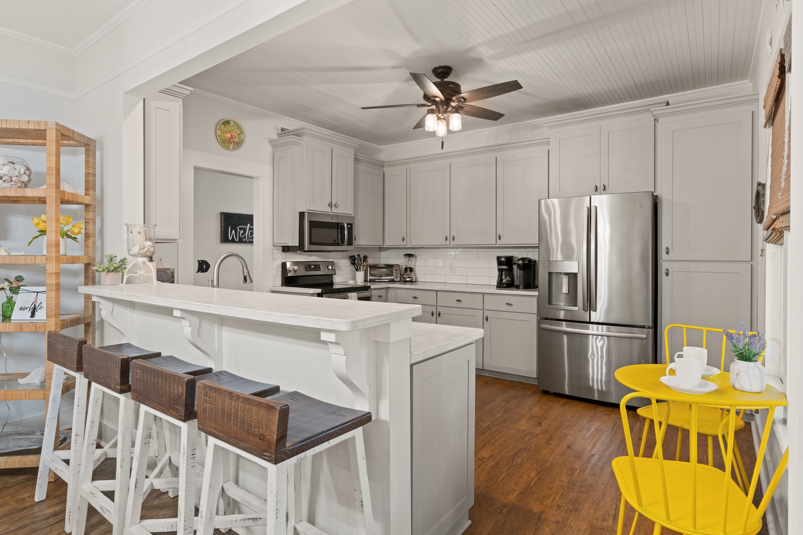 It’s all about the coastal charm of days gone by at Weekes Cottage. This home has been updated with modern amenities but has maintained the true beach cottage charm. The guest’s favorite is the rocking chair front porch and screened in porch, just ideal spot to unwind. The beach is just a couple of blocks away as well as the village. So, biking or renting a golf cart to get around is made easy. Stay once and you will be back again and again.